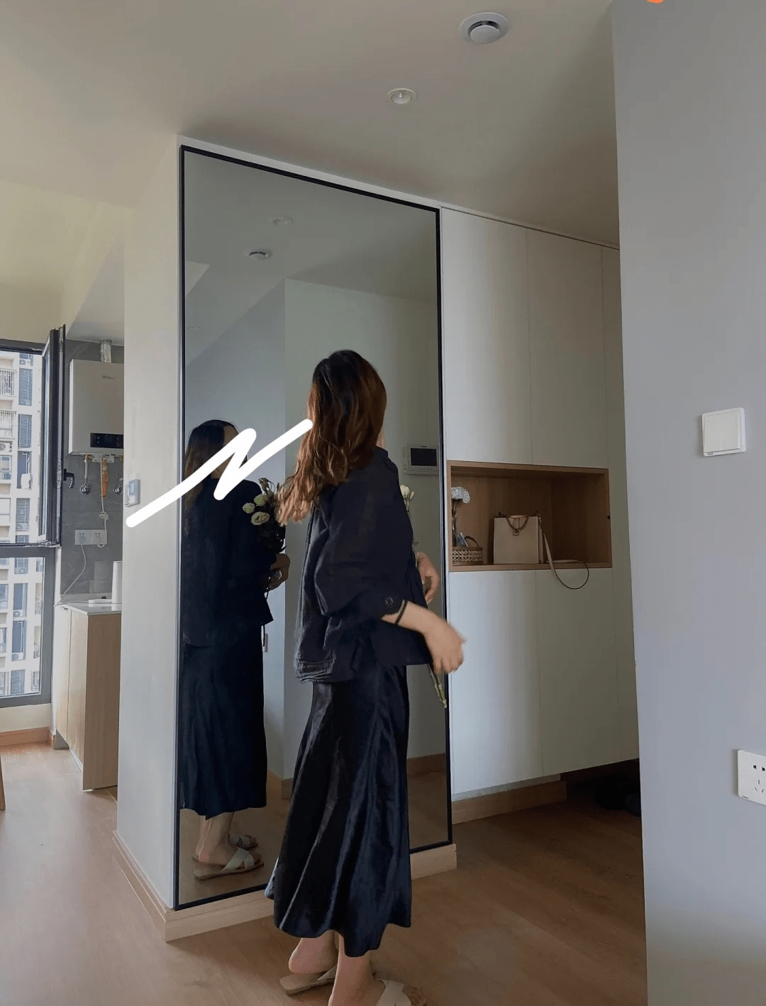 如果装玄关镜,我最希望的就是这样的效果,又高又宽的全身镜非常大气。