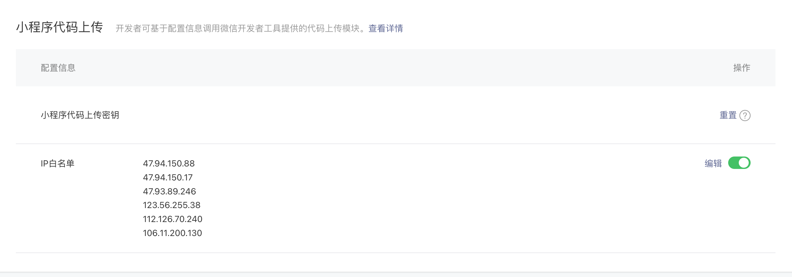 112.126.70.240IP地址不在白名单的话,调用上传时会报错。如果在本地调试,别忘了将本机的公网IP加入白名单,或者临时关闭。