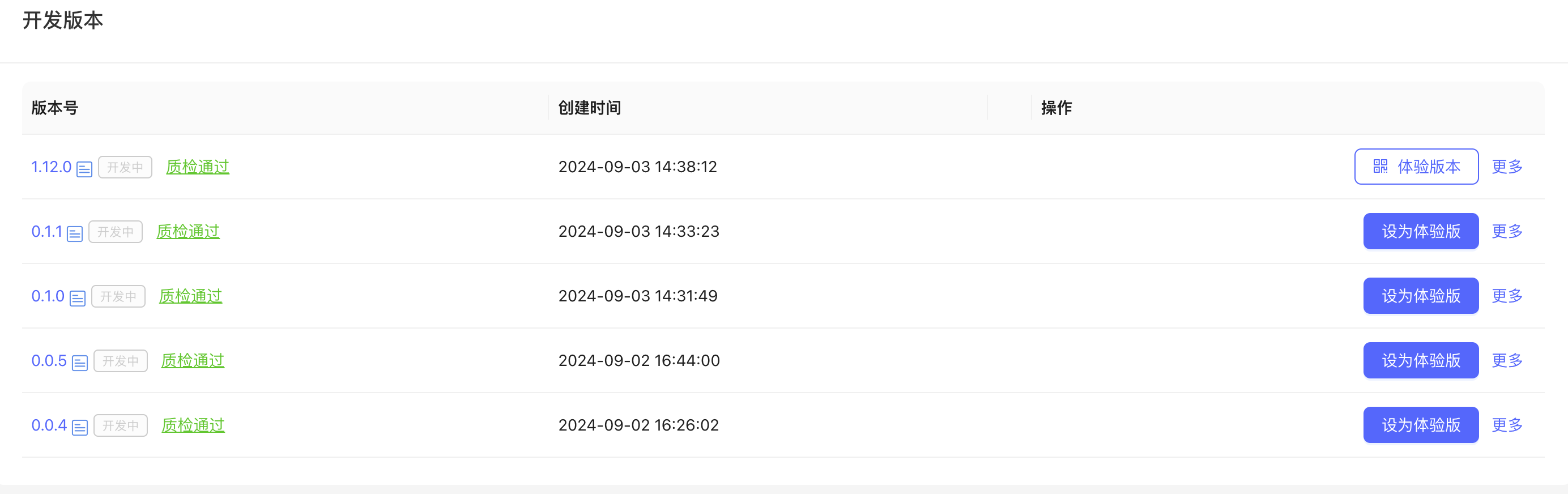 上传命令执行成功后,支付宝小程序后台版本管理中就可以看到这个版本了: